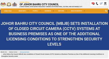 Starting 2026, Johor Bahru City Council (MBJB) requires all new businesses to install at least 3 CCTV cameras as part of its new licensing conditions. The new requirements come as a part of the city's new initiative to strengthen the security of Johor as a whole.